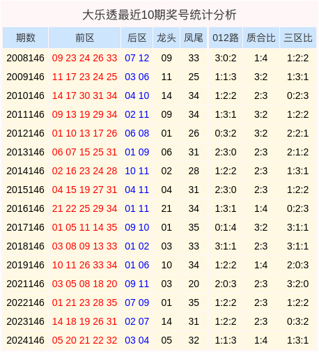 大乐透第2025146期保举: